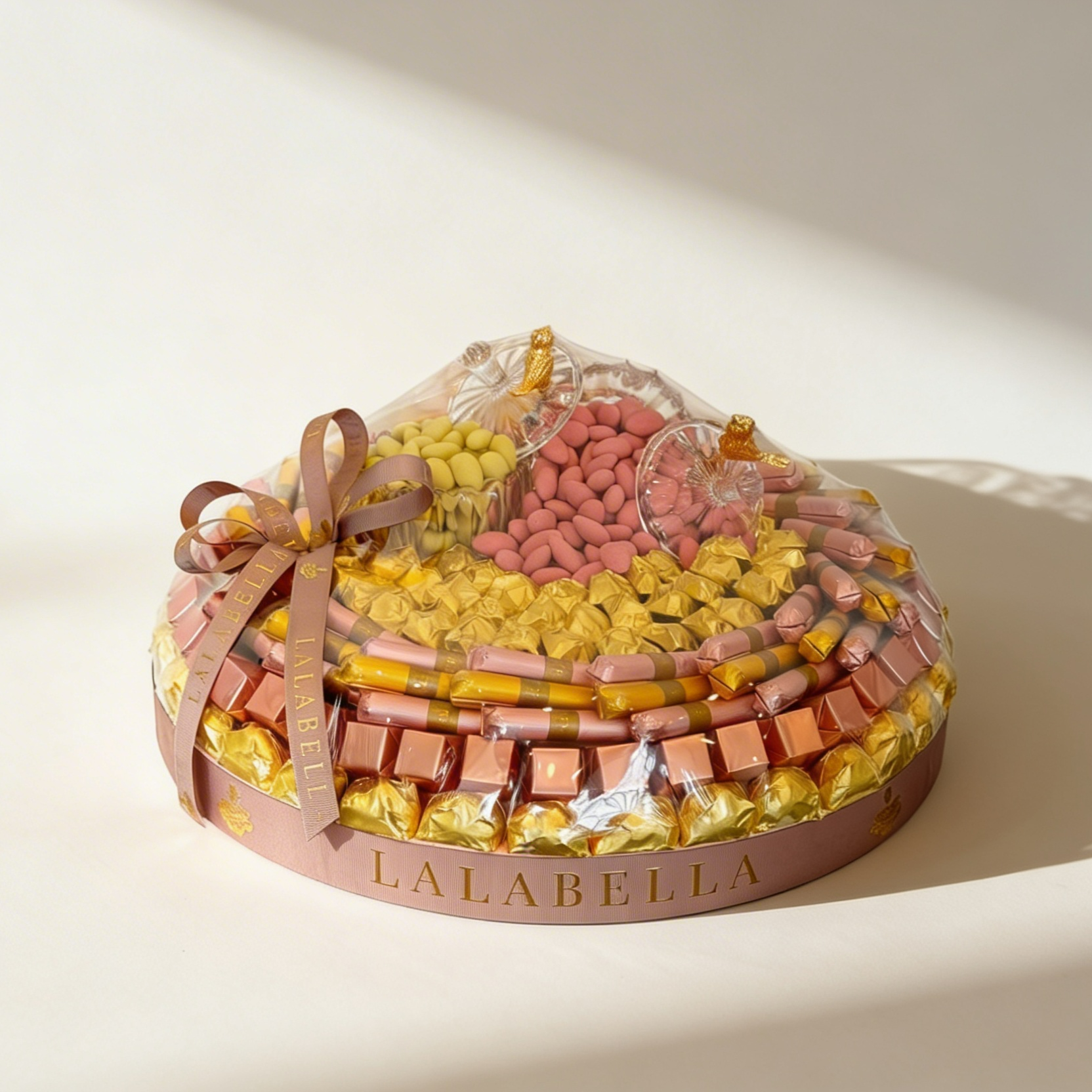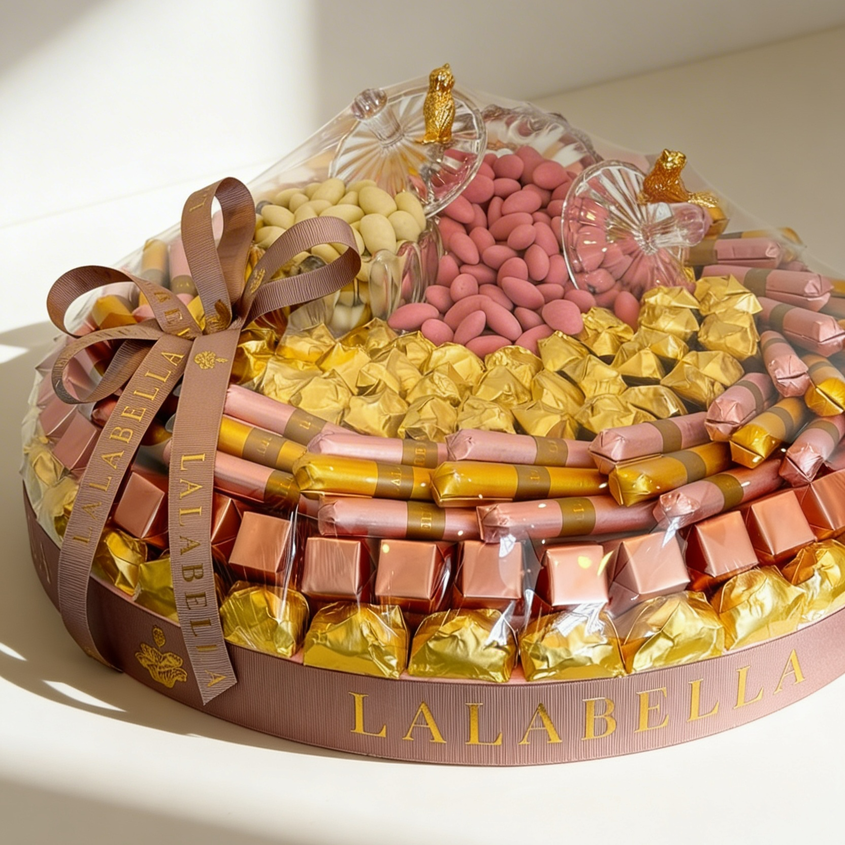 Indulge in elegance with this luxurious Chocolate Arrangement with 3.08kg, beautifully designed in stunning shades of pink and gold. Filled with premium chocolates and delicate sweet treats, it’s the perfect centerpiece for gifting, celebrations, or any special chocolate moment