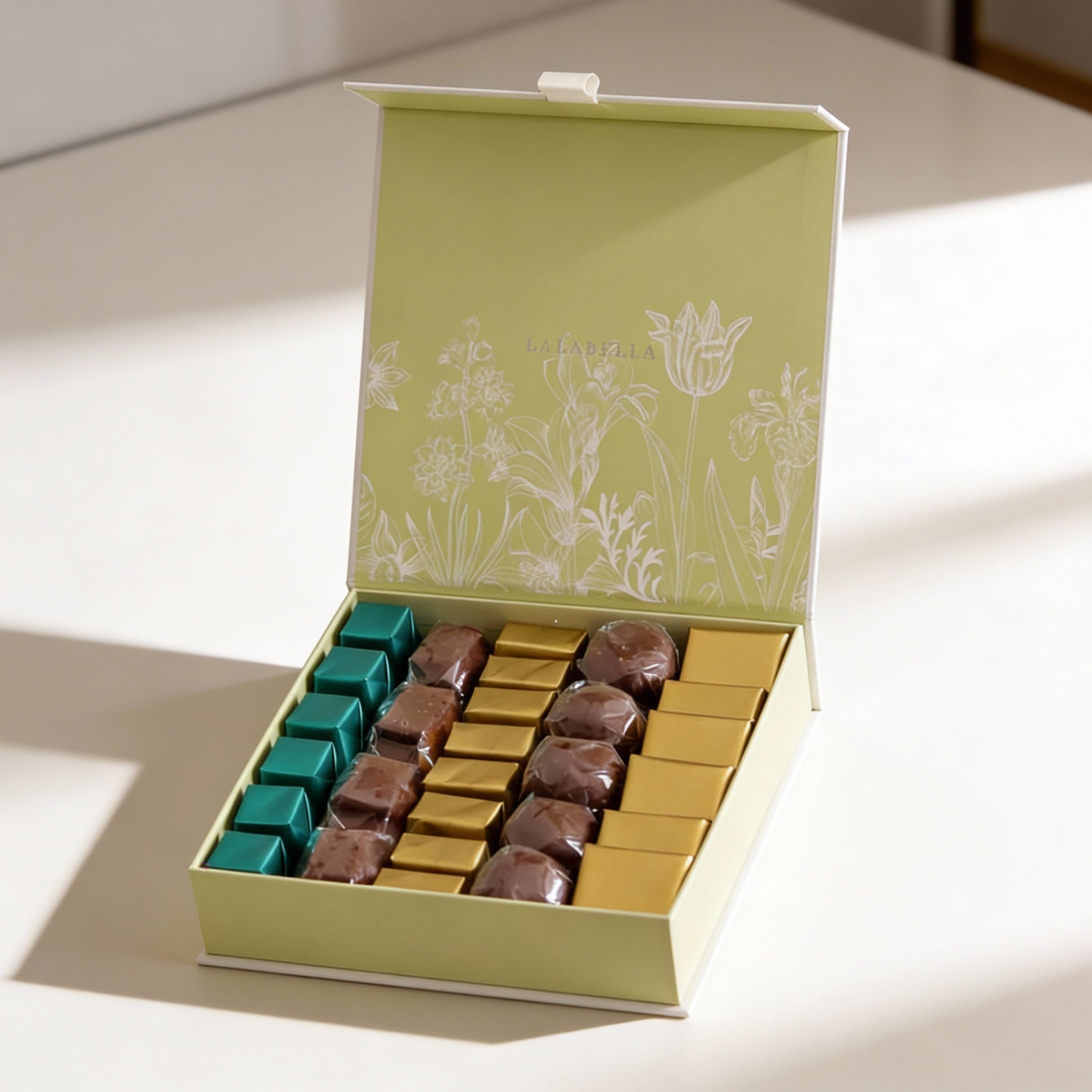 حجم باقة اليد 45 × 65 سم صندوق الشوكولاتة المتوسط 18 × 18 سم