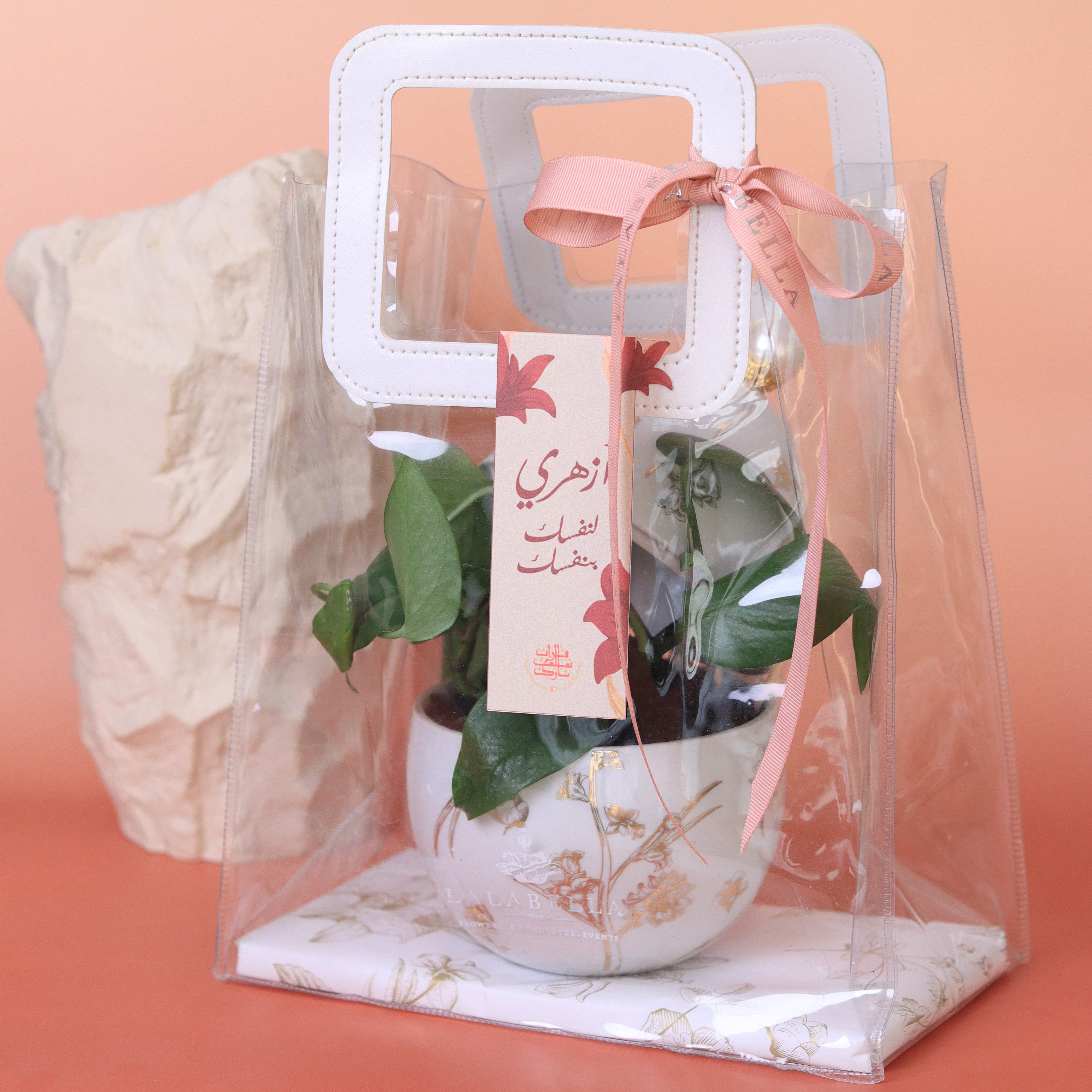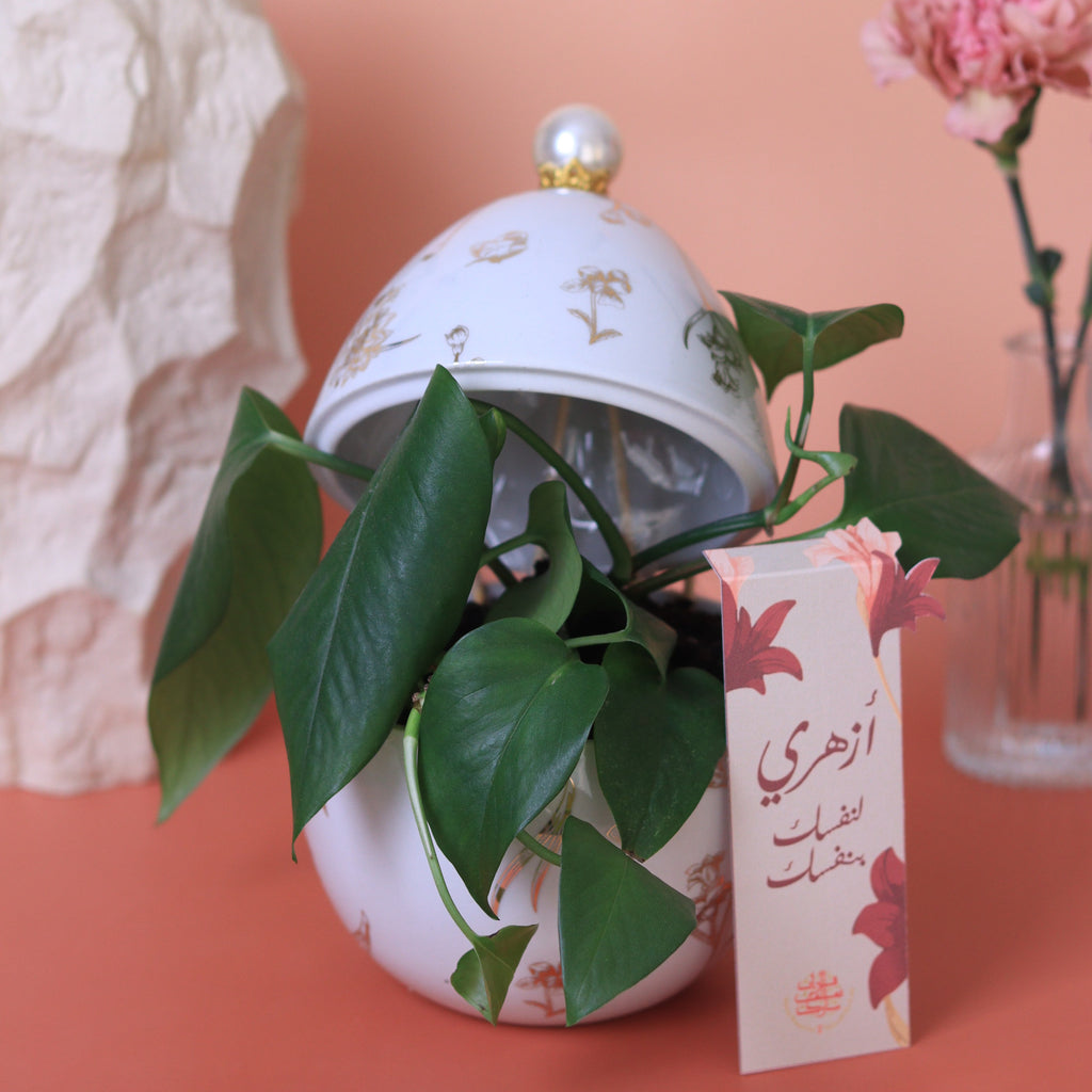 A modern symbol of growth and prosperity — featuring our floral ceramic egg with a money plant and a refined tag that doubles as a bookmark or keepsake, beautifully presented in LalaBella’s clear gift bag.