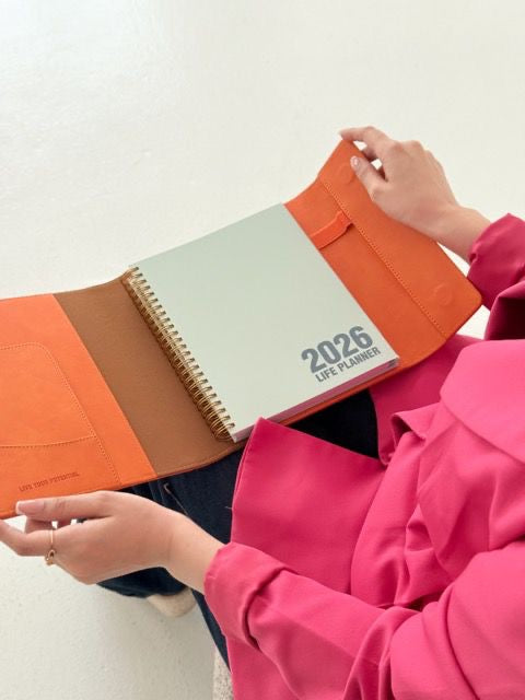 Stay organized in 2026 with our elegant life planner, perfect for daily planning and goal setting. Available in pink, green, orange and Black. Choose it with or without flowers, and upgrade your gift with flowers, a heart balloon, and a small chocolate box from our Belgium collection—perfect for a thoughtful and stylish gift.