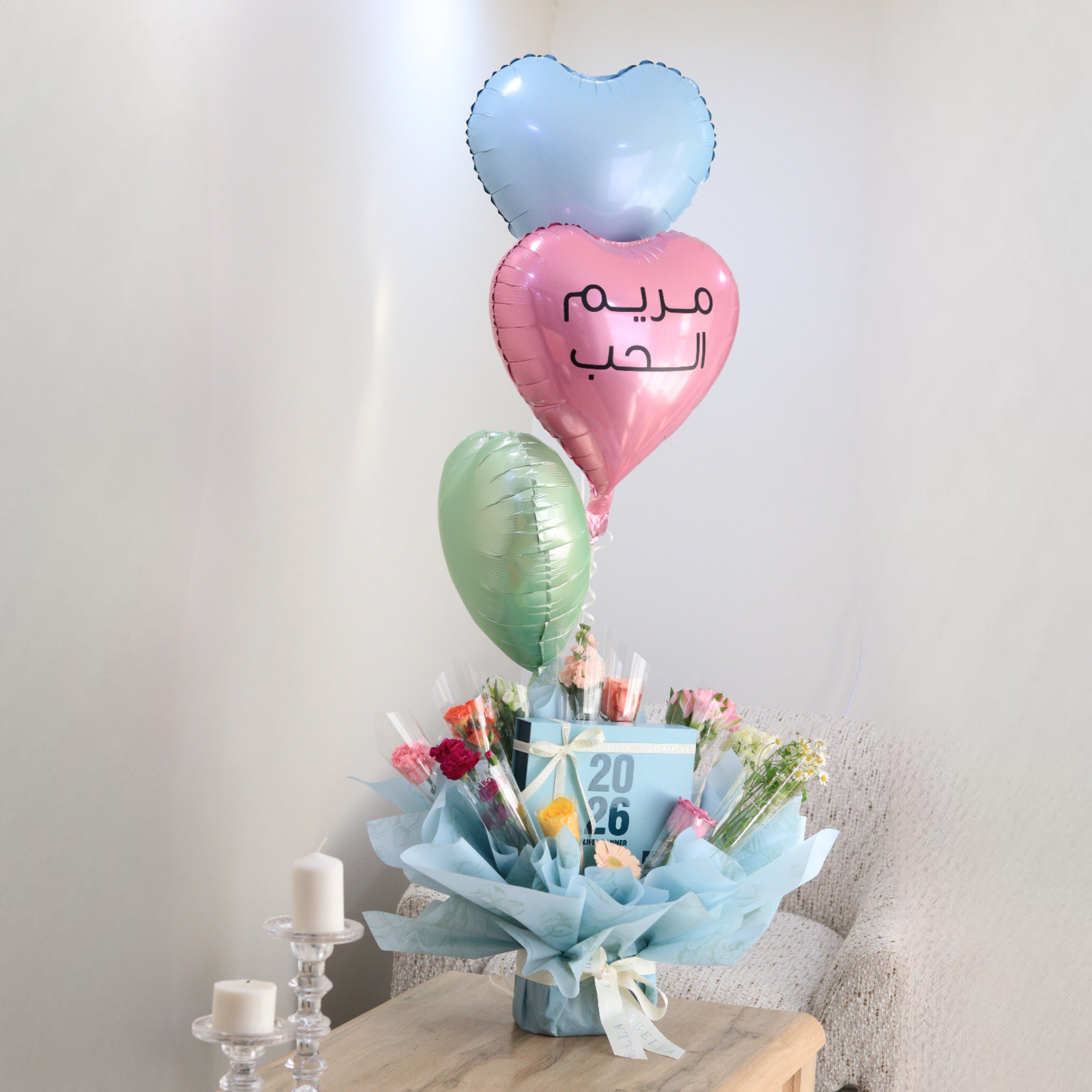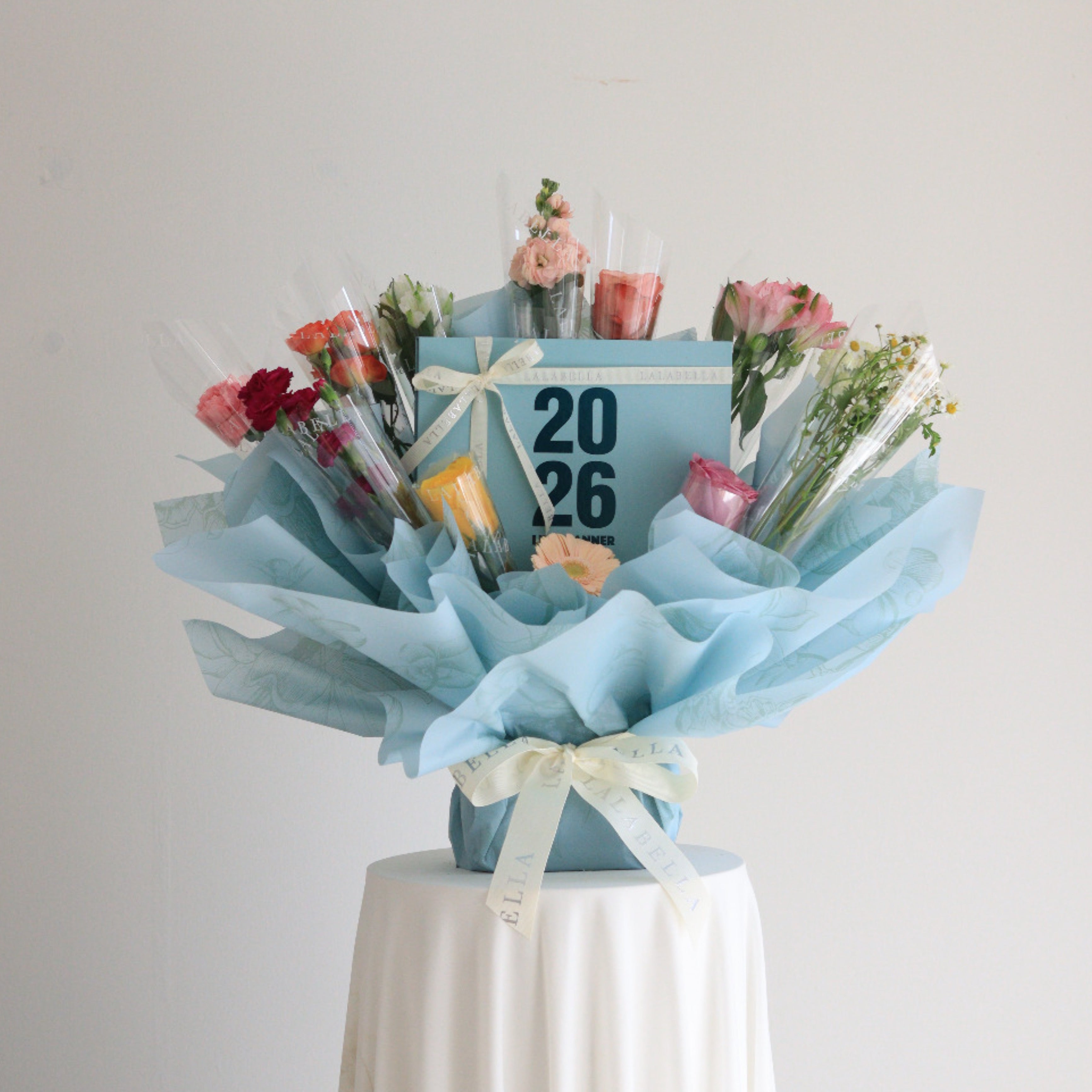 A beautiful gift featuring 12 mixed flowers, one for each month, paired with the 2026 life planner of color of your choice. Designed to symbolize a full year of planning and celebration. Balloons are optional, making it perfect for New Year gifts, birthdays, or meaningful surprises