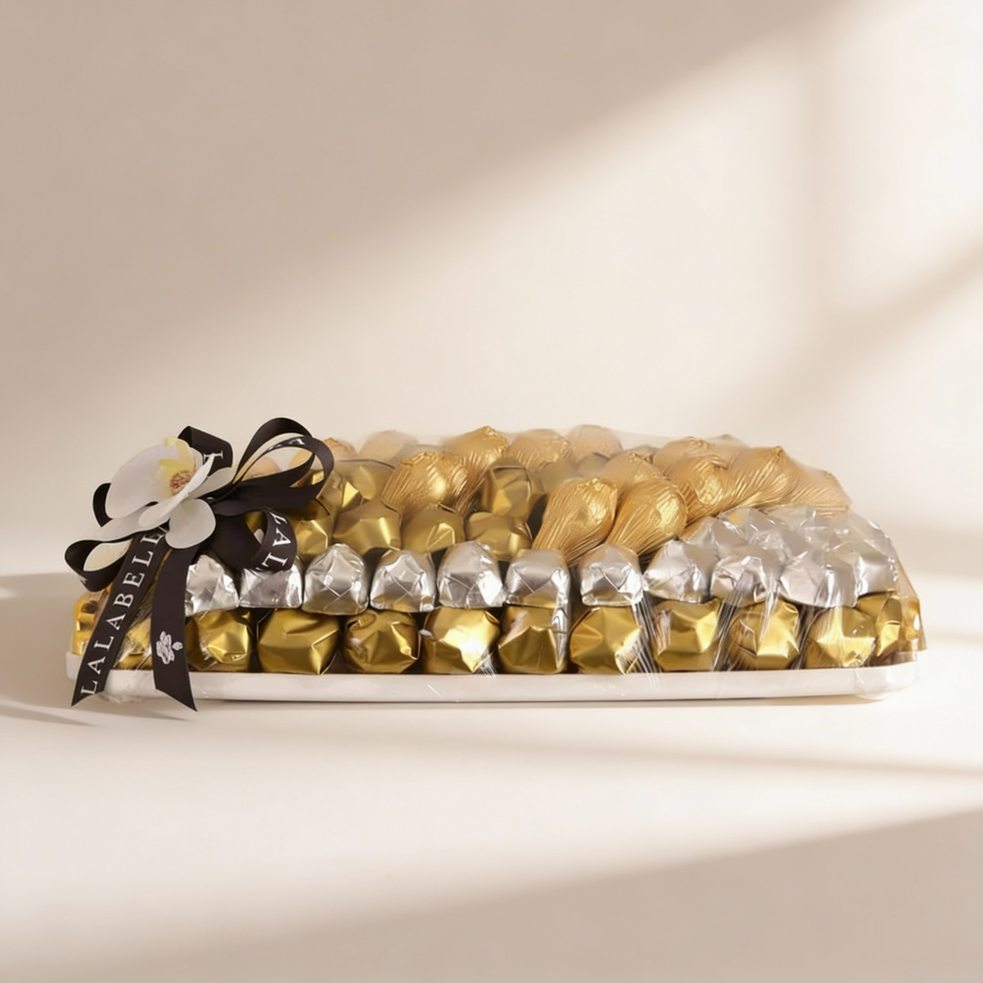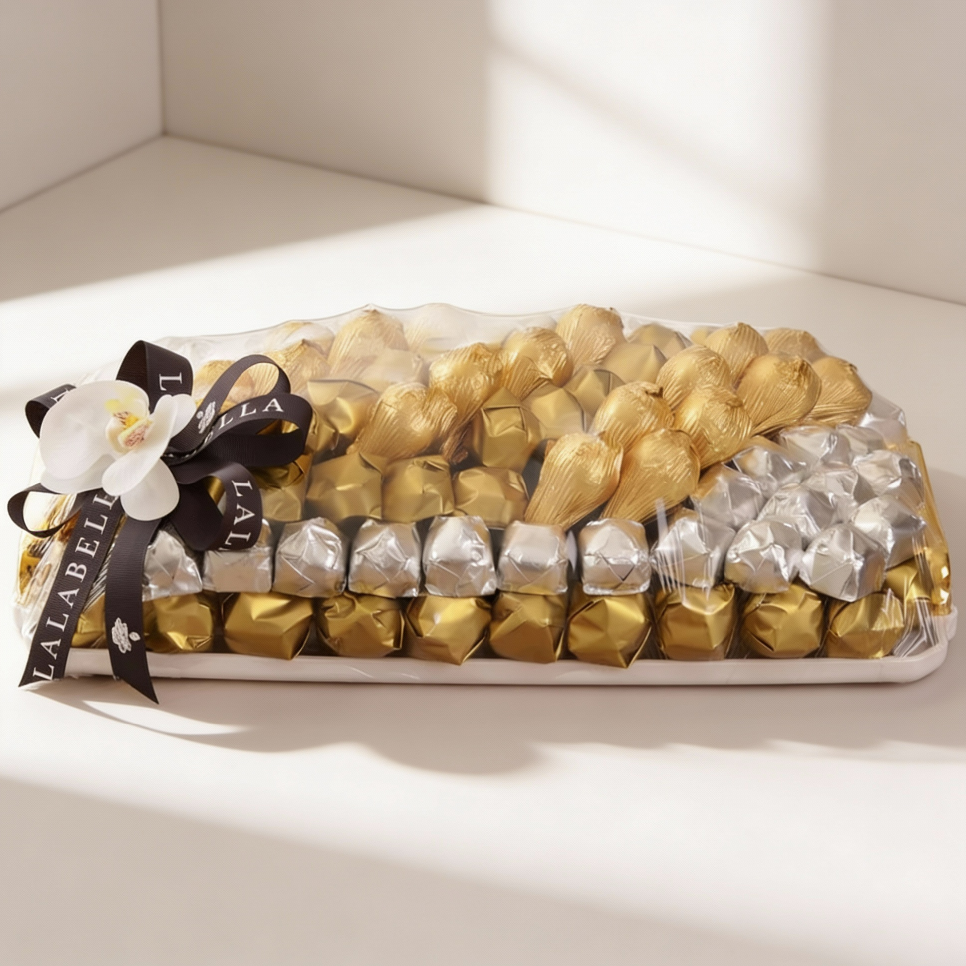 A premium collection of 108 pieces/ (1.930 kg) assorted chocolates, elegantly layered in an acrylic tray.