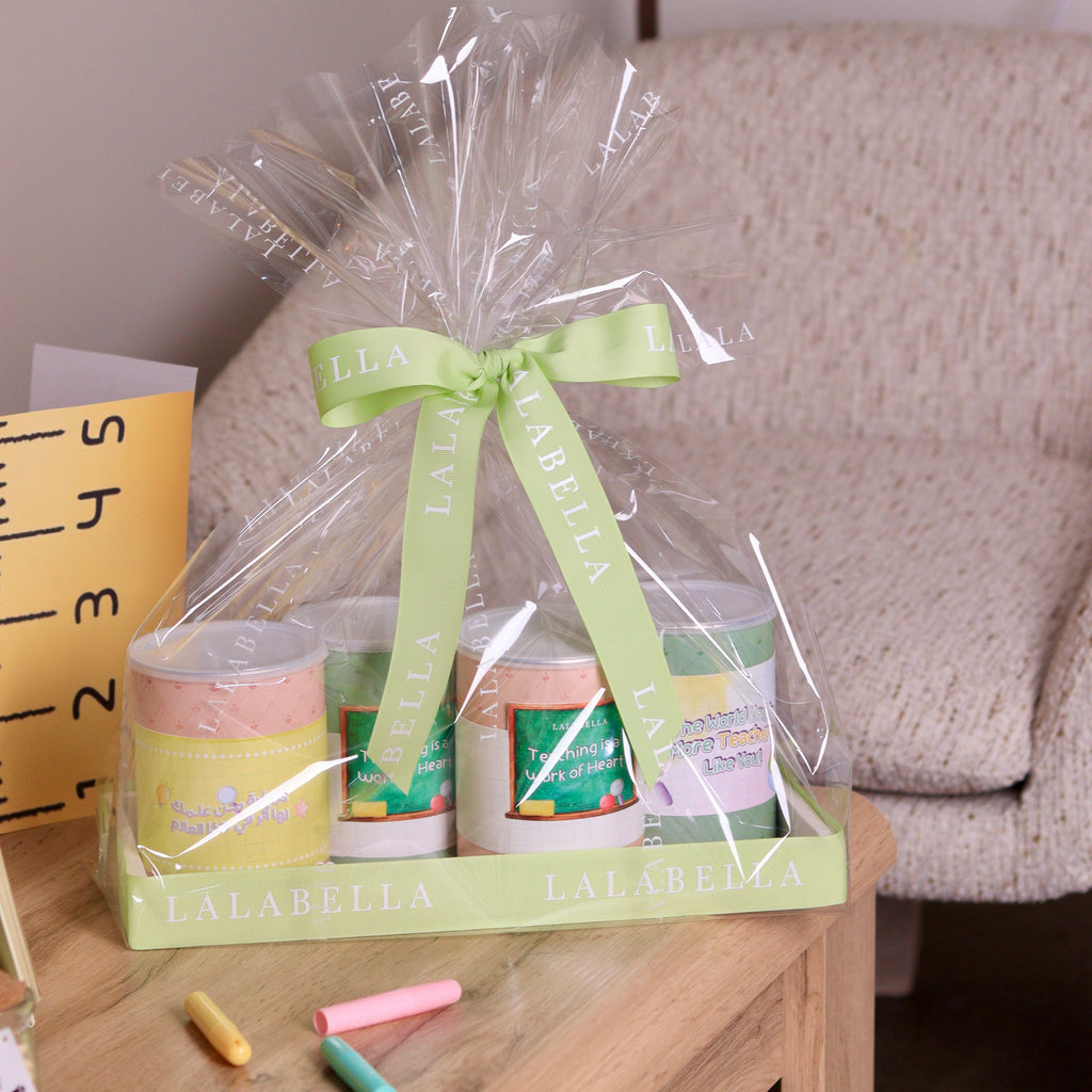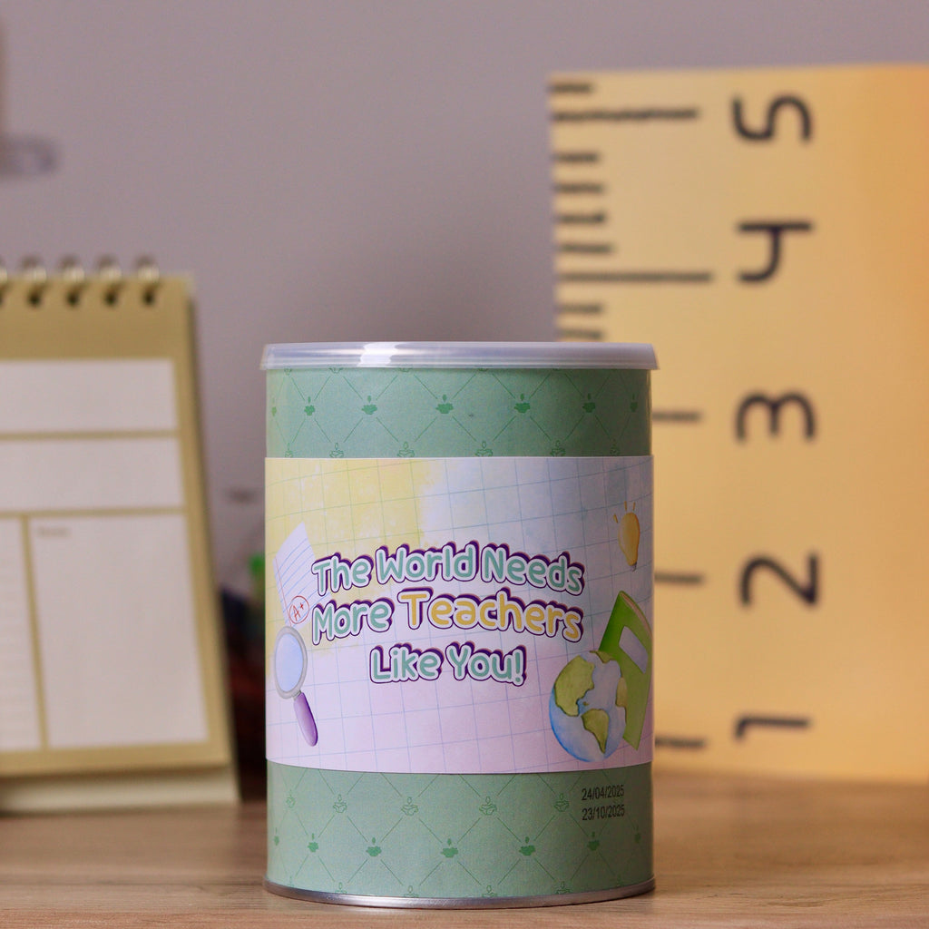 Crunchy wafer rolls filled with rich cream, wrapped in cheerful Teachers’ Day designs. Available in two flavors — pistachio wafers in green box and Nutella wafers in pink box — these treats make a delightful way to celebrate and appreciate teachers. Sold individually, or enjoy the special buy 3, get 1 free offer presented in an elegant box, perfect for gifting across the classroom.