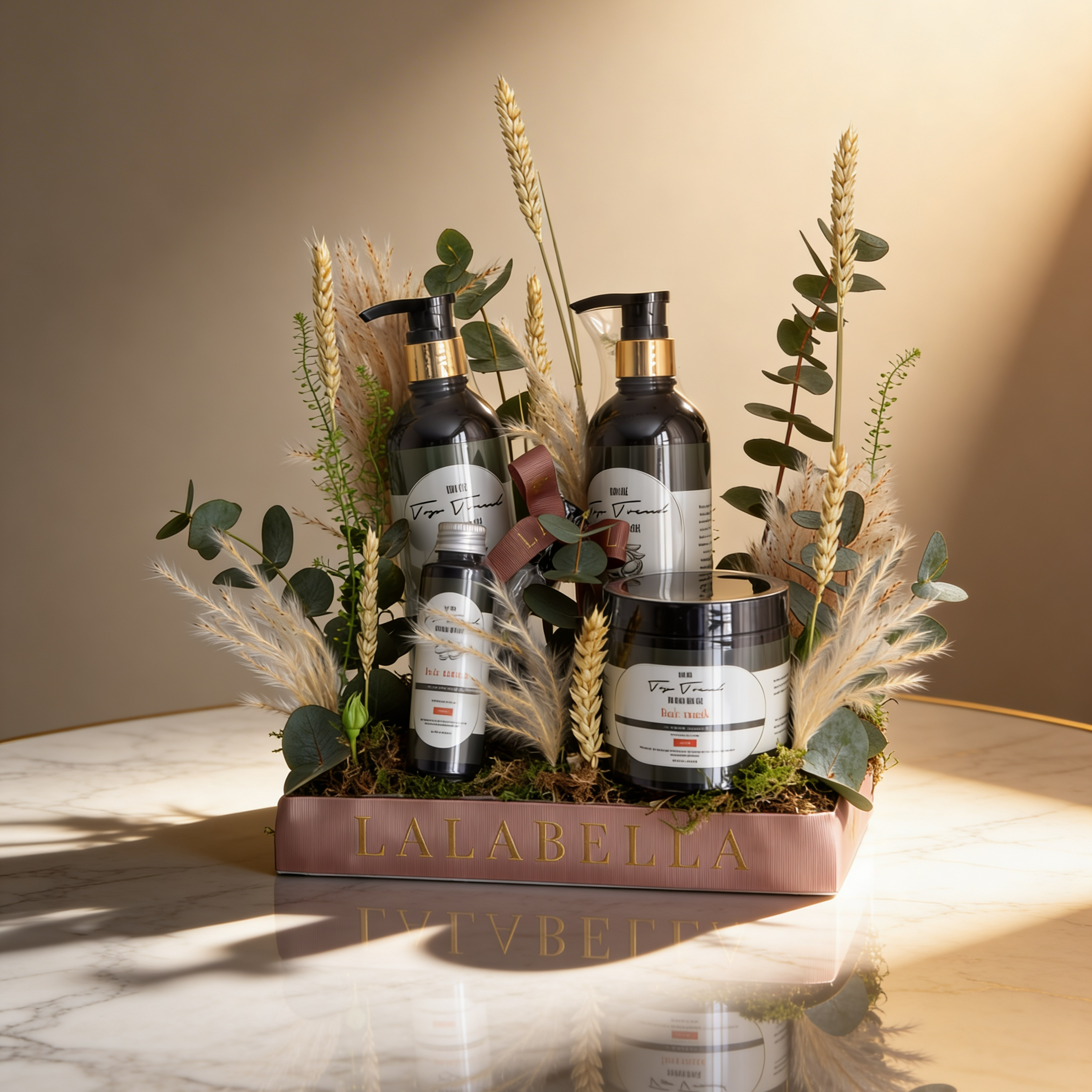 In Collaboration with Cosmo Beauty - A set of 4 pieces hair care gift set arranged in an elegant box with dry flowers: