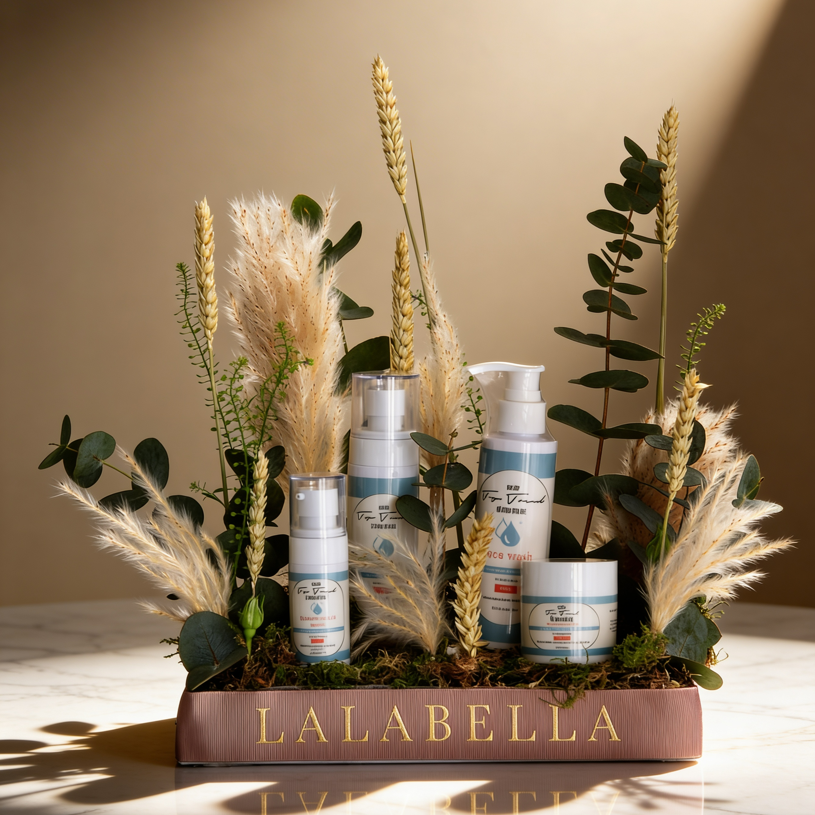 In Collaboration with Cosmo Beauty - A set of 4 pieces skin care gift set arranged in an elegant box with dry flowers: