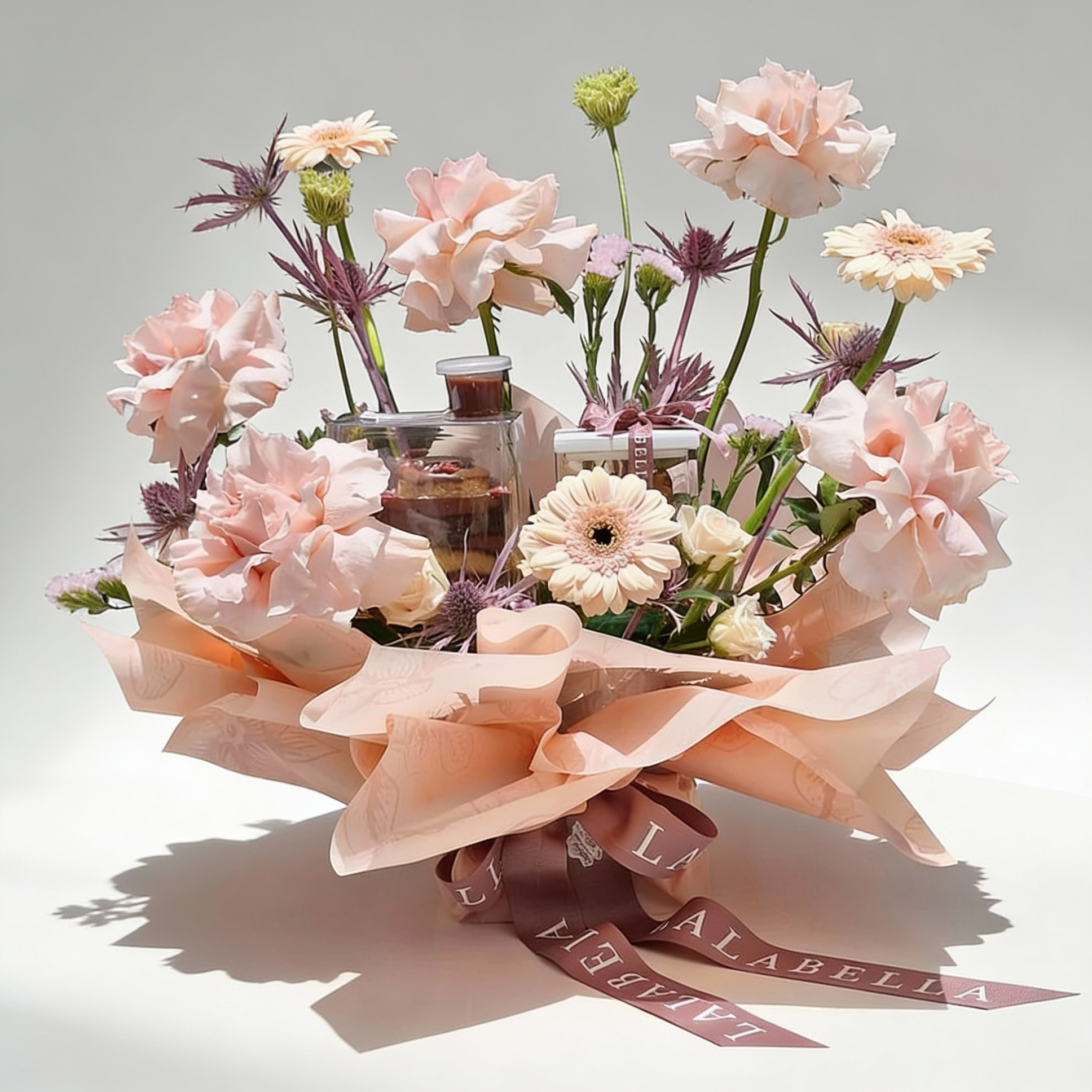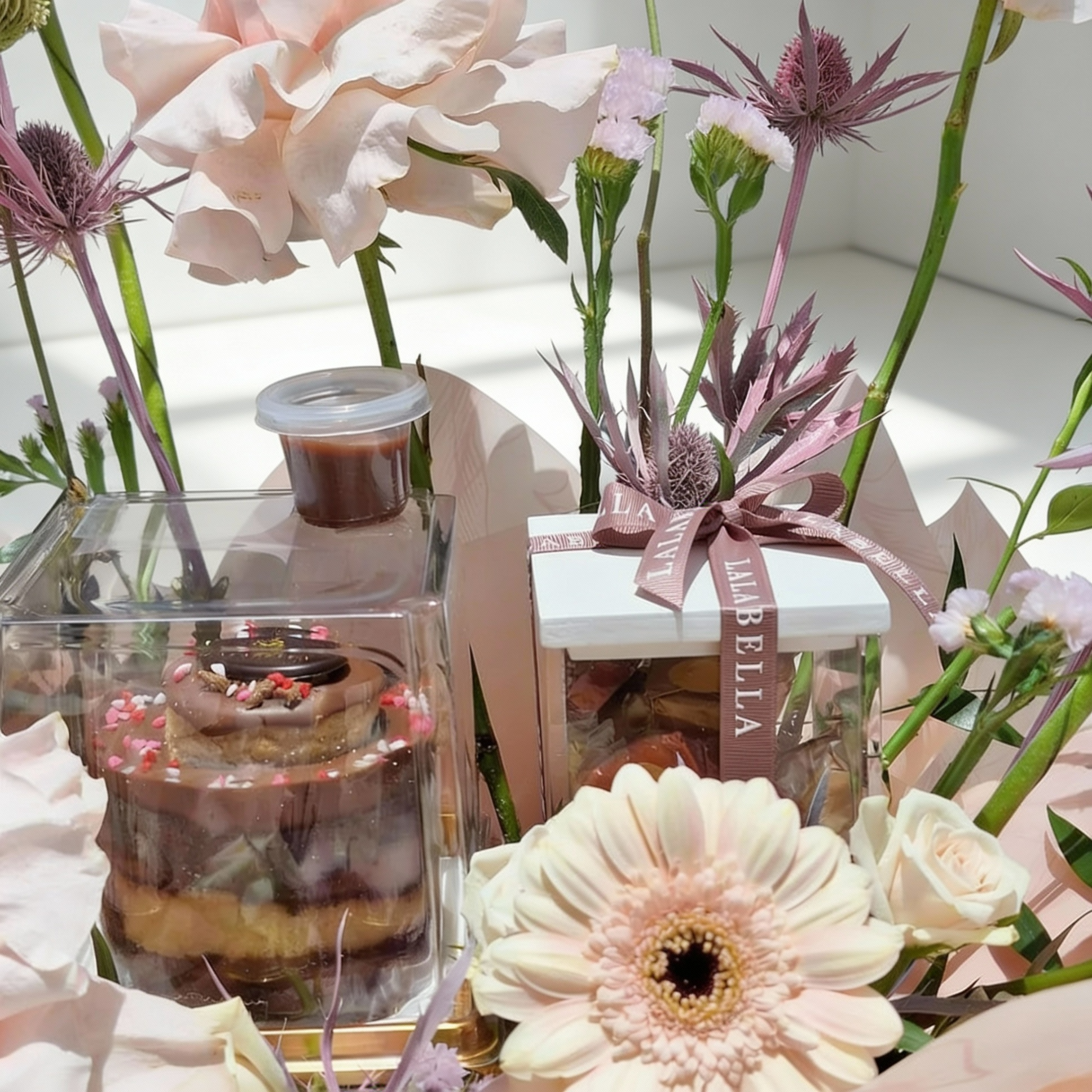Celebrate with Cake & Flowers and Chocolates. Bouquet with mixed roses flower arrangement and a your cake of choice with box of mix deluxe collection chocolates.